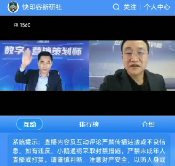2022年9月16日,在圆形直播灯和两部手机前,牛云老师集太极之灵气,运用阴阳之演化,八卦羽扇在手,“指点江山,激扬文字”神情悠闲而有神,目光直通未来。牛云老师以天为师,以地为盘,以日月星辰为子,下着一盘大棋。恰似当年诸葛卧龙,中军帐中指挥若定,谈笑间,神州大地万店同播发起人誓言“为家乡代言,助力经济振兴,人人有责”,如星河灿烂,星耀华夏。这是抛砖引玉,“星星之火,可以燎原”,“新电商、新零食、新基业”的伟大目标已经出现,全新的商业模式已在构建!在牛云老师宣布万店同播天水会场开播后,不到40分钟的直播过程中,销售花牛苹果两万多斤,价值十多万元。这就是花牛苹果在甘肃工业学院快印客产业学院陈秉良程华尹志霞三位副院长及实习讲师高宏强高总等,遵循老师“致良知”的本分,用“互联网+”工具赋能给营销,然后再通过技术营销赋能给花牛苹果,实现了花牛苹果的线下线上互动营销。这就是在花牛苹果原有线下销售渠道的基础上,用“互联网+”再建了第二条营销渠道,而花牛苹果也依托“互联网+”的新模式,把移动互联网工具化了,以后天涯海角都可以随时吃到“用一个苹果诉说8000年的上古文明”的人类第四颗苹果了。
